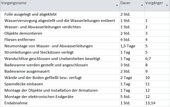vergeben Sie den Vorgangsnamen „Badsanierung“.